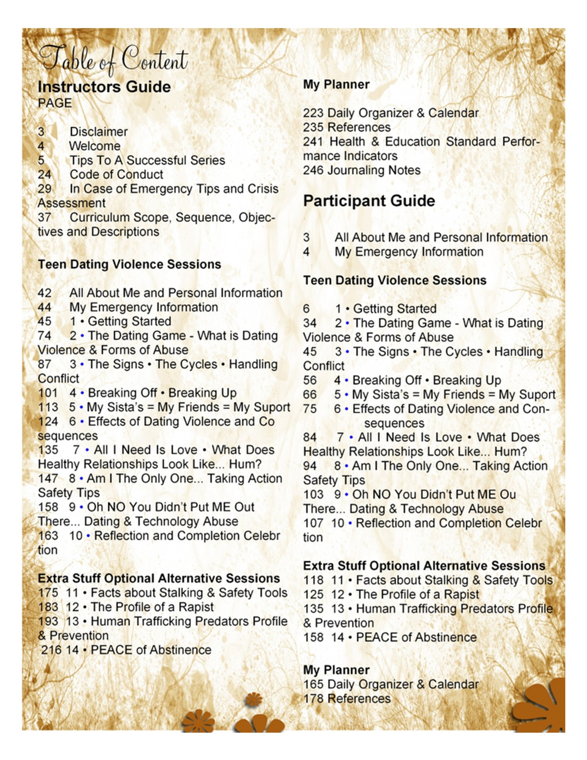 - Protection Against Sex Trafficking: The series includes critical insights and practical applications to educate girls about common lures of human trafficking (especially sex trafficking). It helps participants recognize red flags, understand malicious intent, and apply suggested safety tips and resources.